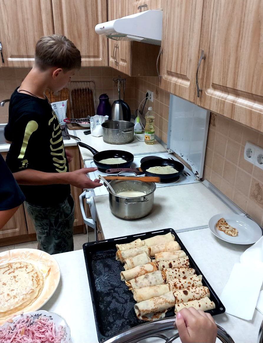 Щотижня, упродовж літніх канікул, підопічні КЗ “Міський центр соціальних служб” Івано-Франківської міської ради готують чудові страви. Цього разу – млинці з м’ясною начинкою.