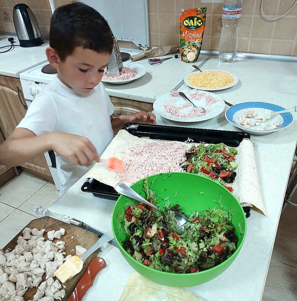 Минулого тижня наші фахівці допомогли дітям у виготовленні рулету з лаваша. Під час майстер-класу вихованці самостійно обирали начинку та формували її на листку лаваша.