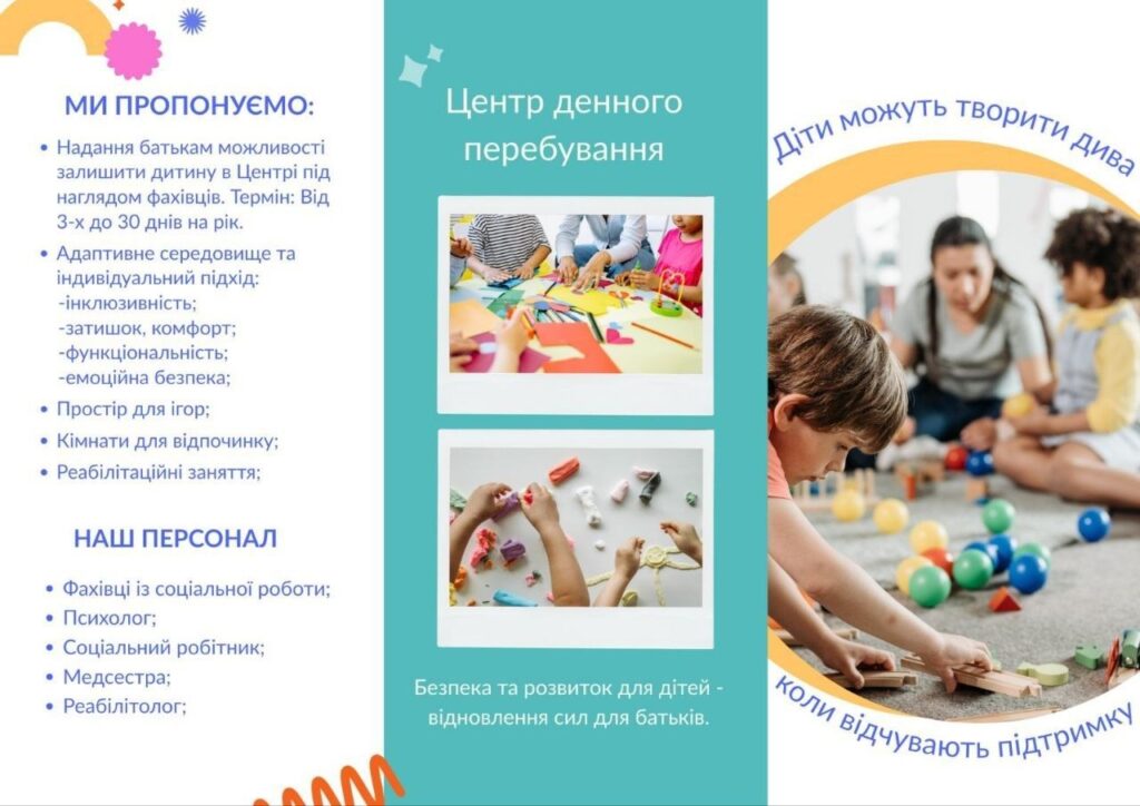 У Центрі створені всі необхідні умови для комфортного перебування дітей, розвитку, спілкування та підтримки. Тут дбають про безпечний простір, турботливу атмосферу та всебічний розвиток малечі.