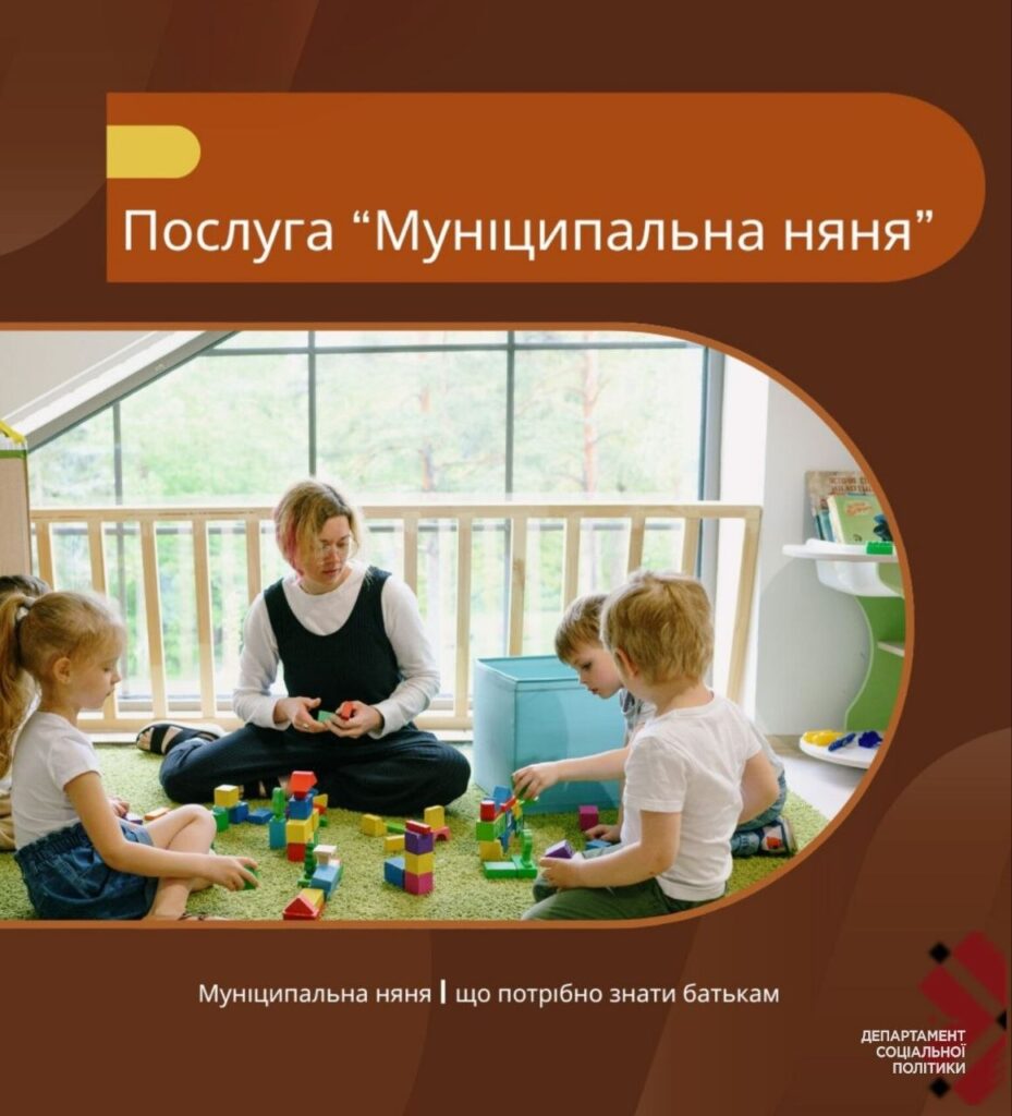 «Муніципальна няня» — це послуга догляду за дитиною до досягнення 3-річного віку (або 6-річного віку у визначених випадках), що надається для підтримки батьків, опікунів дитини.